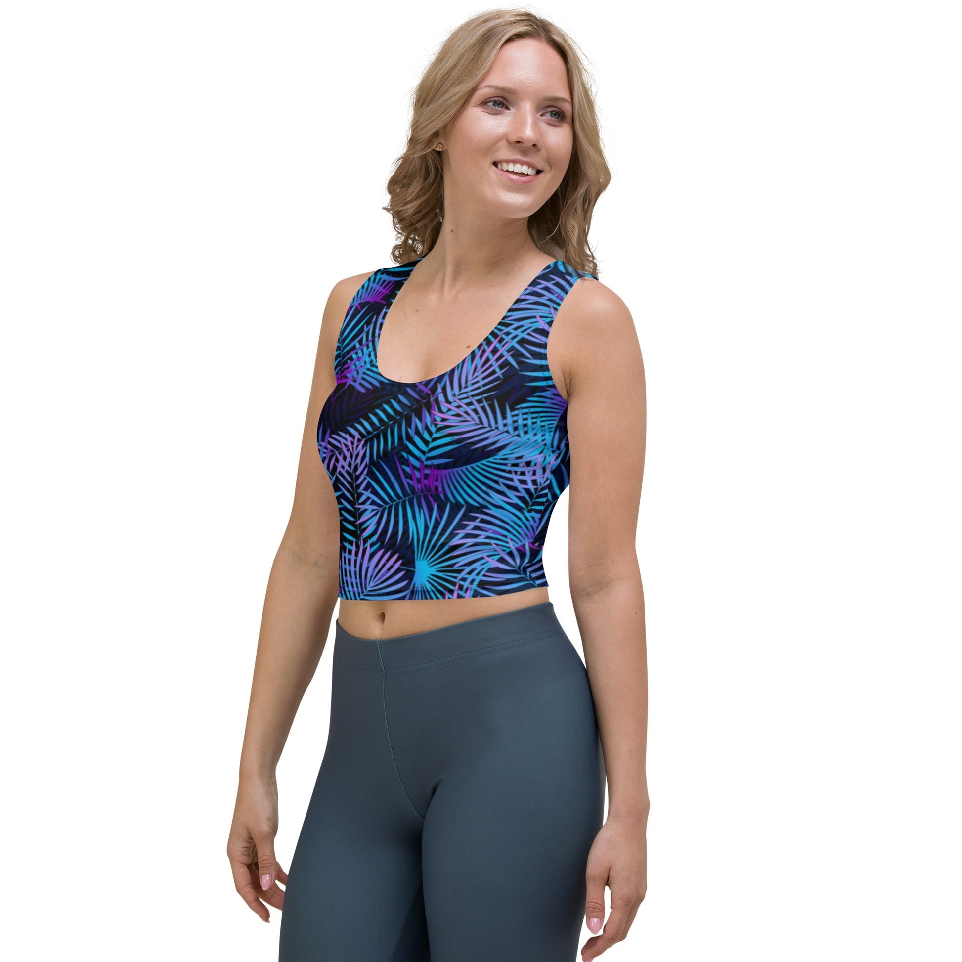 Look fabulous in an all-over printed, body-hugging crop top.