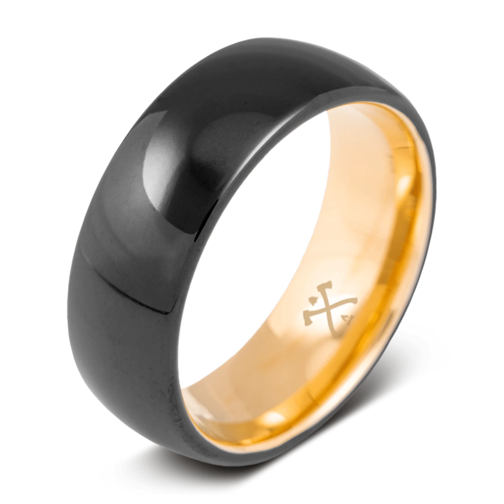 - Black Plated Tungsten with 14K Yellow Gold Plated Sleeve