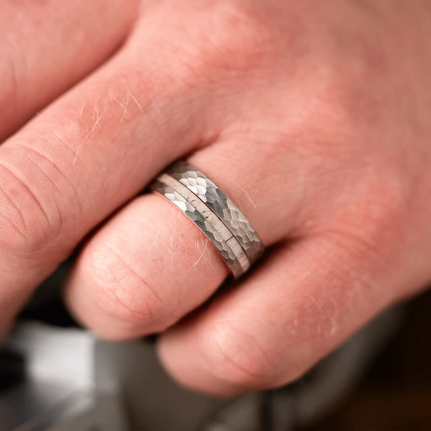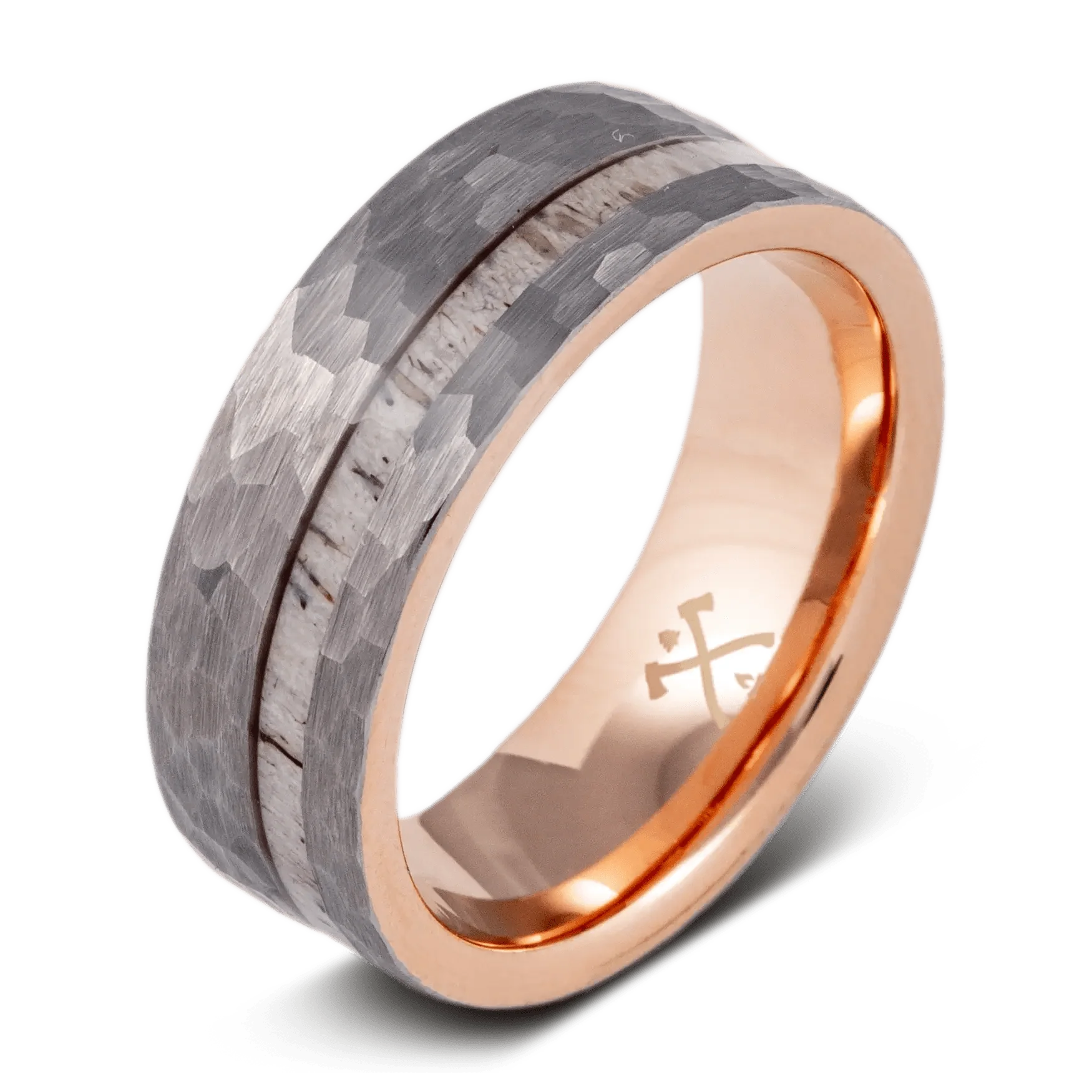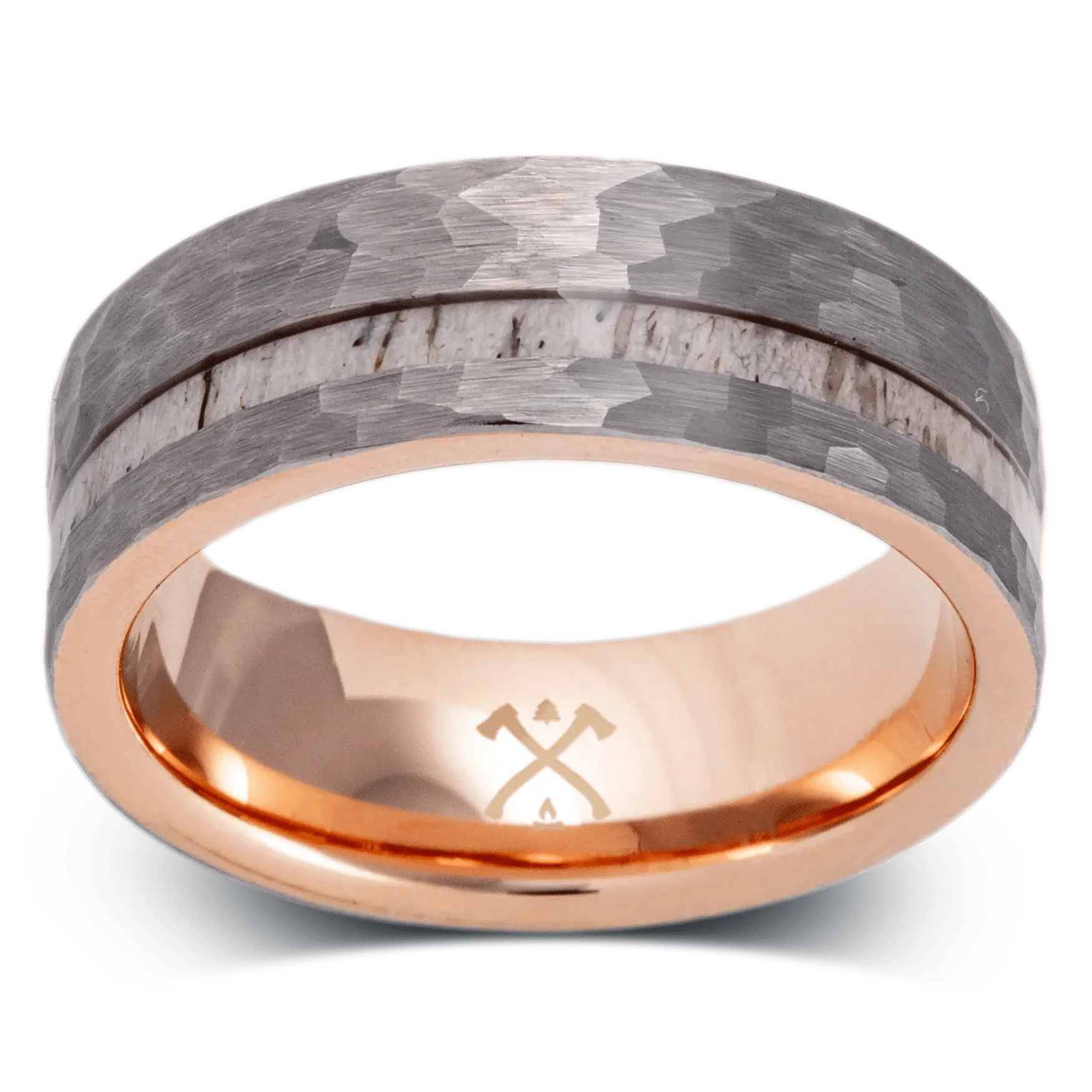 - Tungsten with Offset Deer Antler Inlay and 18K Rose Gold Plated Sleeve