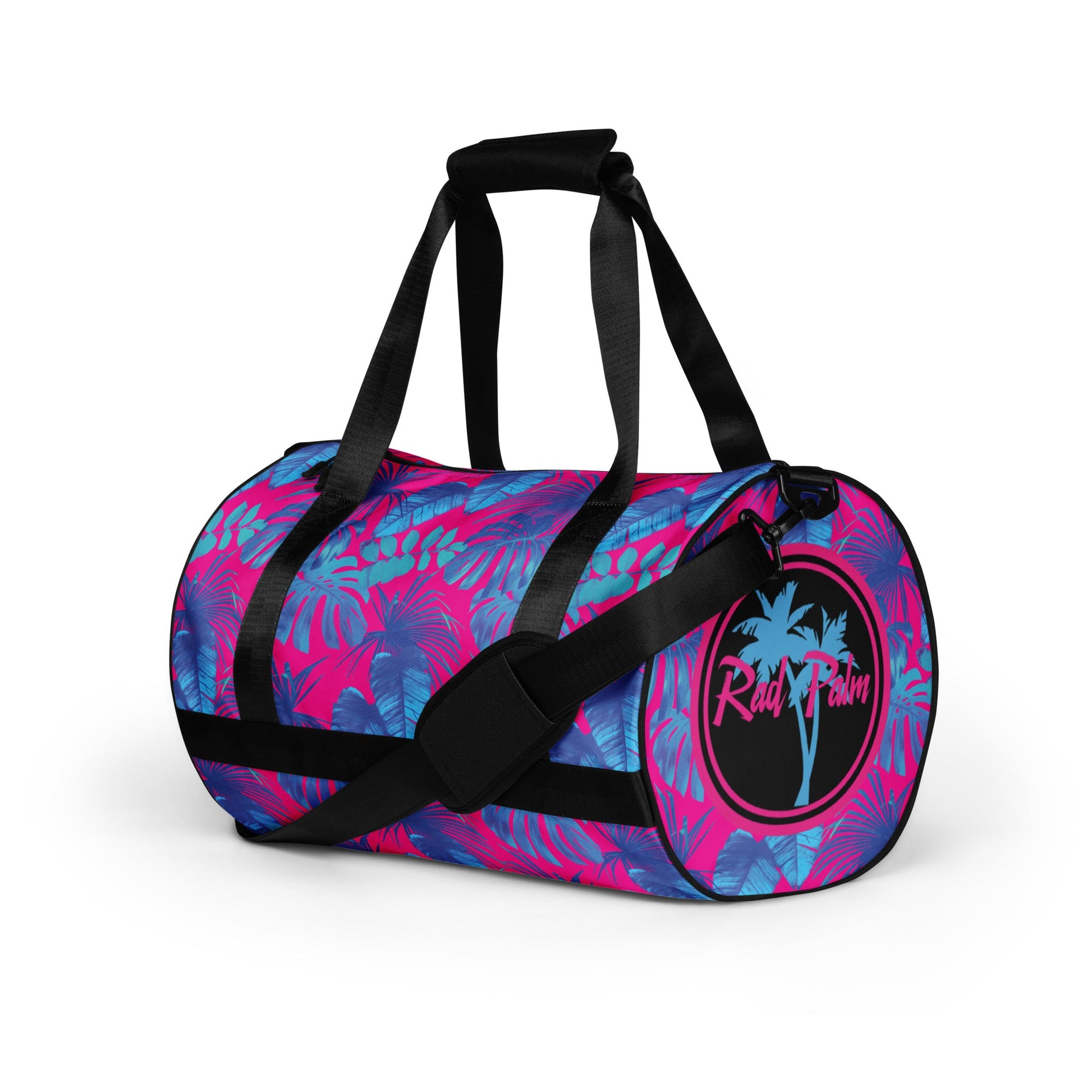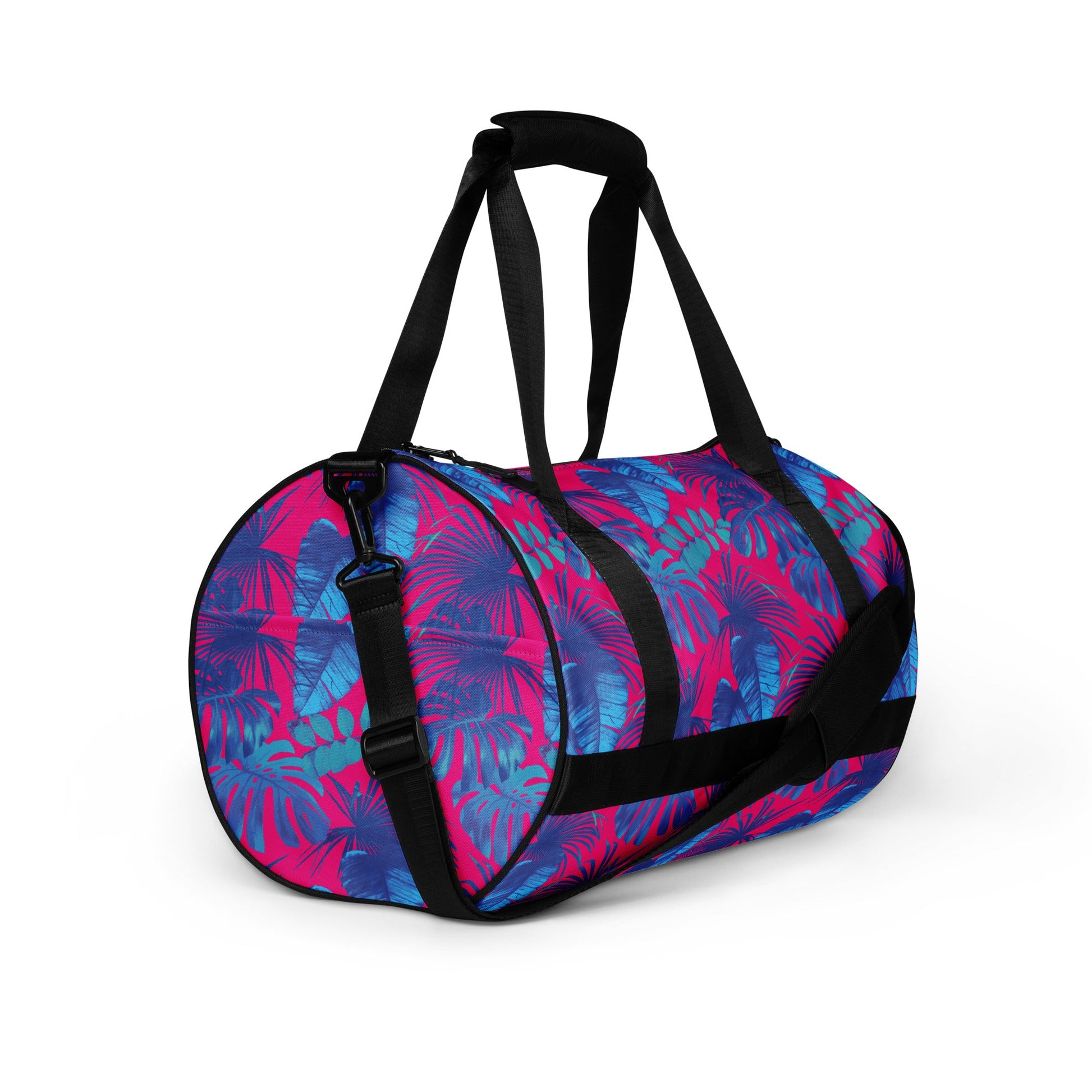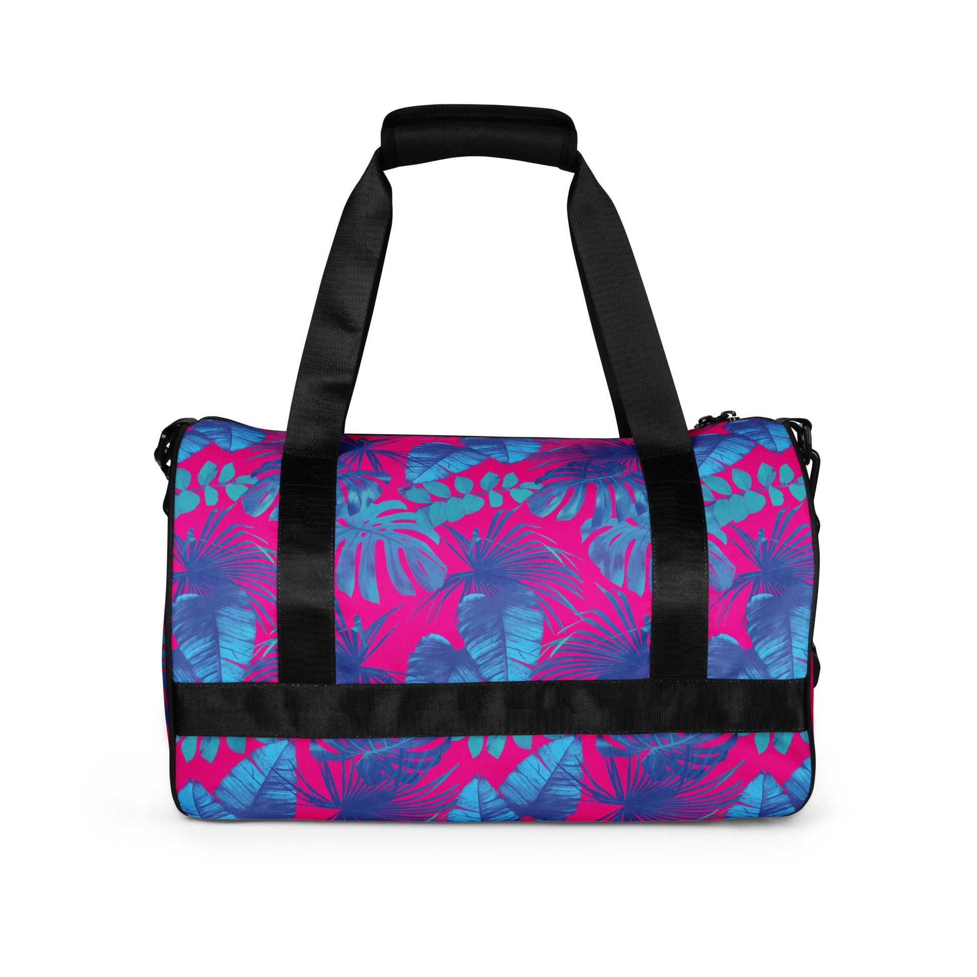 Ready to get your fitness on? Add some punch to pumping iron with this all-over print gym bag. Made from 100% polyester and sturdy, water-resistant fabric, this bag is fun meets function. And it’s got pockets!