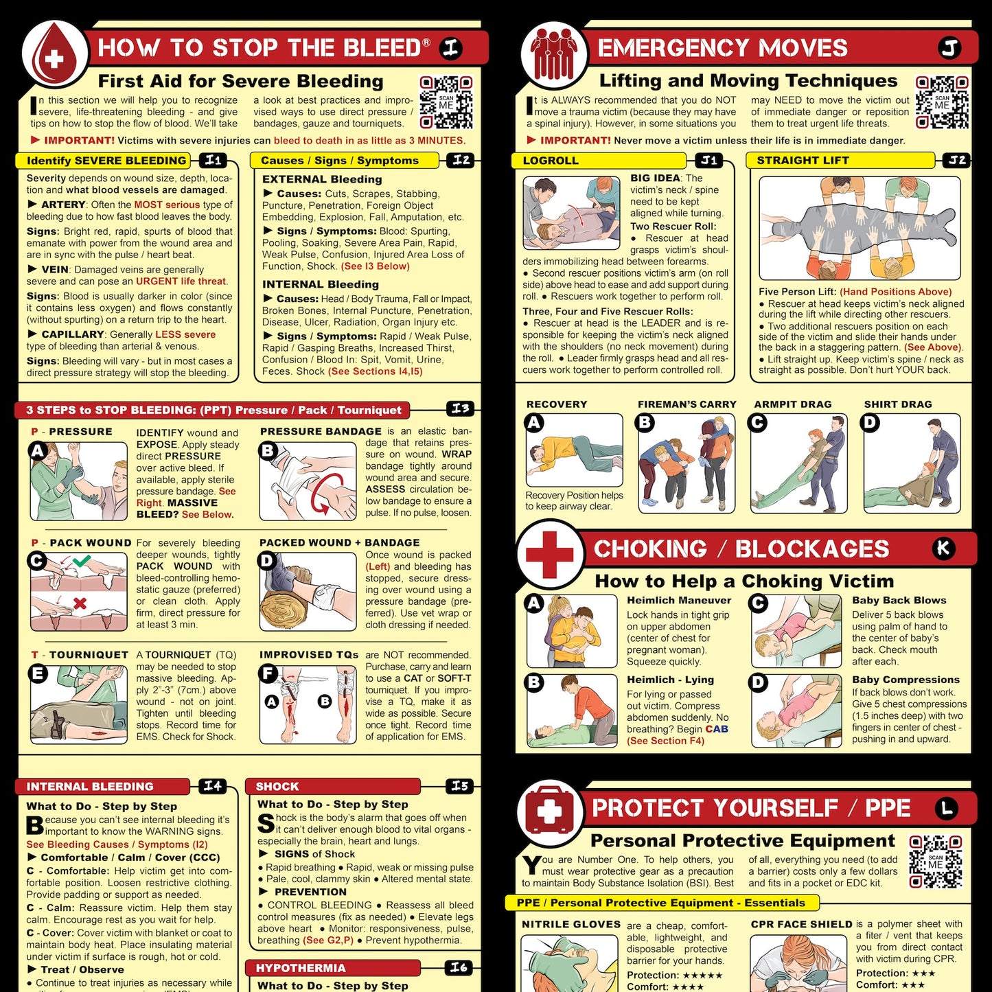 To accomplish this goal, I have condensed the world's most authoritative preparedness, first aid and contingency medical practices into a rugged, compact, everyday carry, pocket guide that ANYONE (regardless of prior training or skill level) can easily use to save a life.