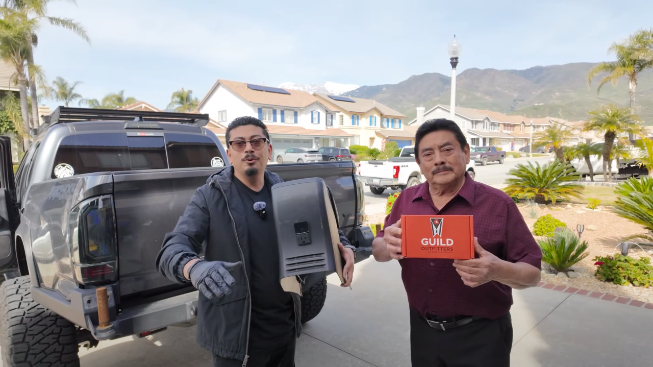 Developed by Guild Outfitters and our suppliers to fit the 3rd Gen Tacoma*, 2nd Gen Tacoma*, 5th Gen 4Runner**, 3rd Gen Tundra*, and FJ Cruiser this awesome kit includes a harness and OEM 3 prong Outlet that allows you to access your factory inverter at 400W while driving your Toyota instead of it kicking down to 100W. The mod’s wiring is completely plug-and-play and can be installed in as little as 20 minutes and includes a bottle opener to pop a cold one when finished. To install the outlet the kit does require cutting interior trim with our included metal template and custom cutting tool that works with any household drill. If you follow our install video or one of our YouTube Channel partners you can join the thousands who have already done this DIY kit. Our kit is ideal for people that power fridges & accessories in the bed of their truck or want to charge fragile / expensive items in cab like cameras, laptops, drones, or portable batteries. Guild’s custom harness has a 40” leg for your new outlet to be installed at a location of your choice in the cab.