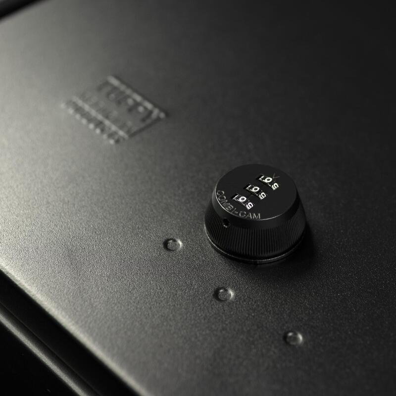 This high security steel security lockbox mounts under the rear seat in a 2015-2024 Ford F-150 and 2017-2024 Ford F-250 and F350 Super Duty SuperCrew Crew Cab. The full width formfitting design of the Tuffy lockbox has over 4500 cubic inches of lockable storage. Its secured contents are easily accessed by flipping either or both rear seat(s) up and opening the corresponding lid(s). The unique design allows the full width to be used to stow firearms or other long items. Featuring Tuffy's Pry-Guard Locking System with three-digit combination security locks with built in weather seals. Chamfered corners are incorporated into the design making it easier to operate the seat releases as well as aiding passenger ingress and egress.