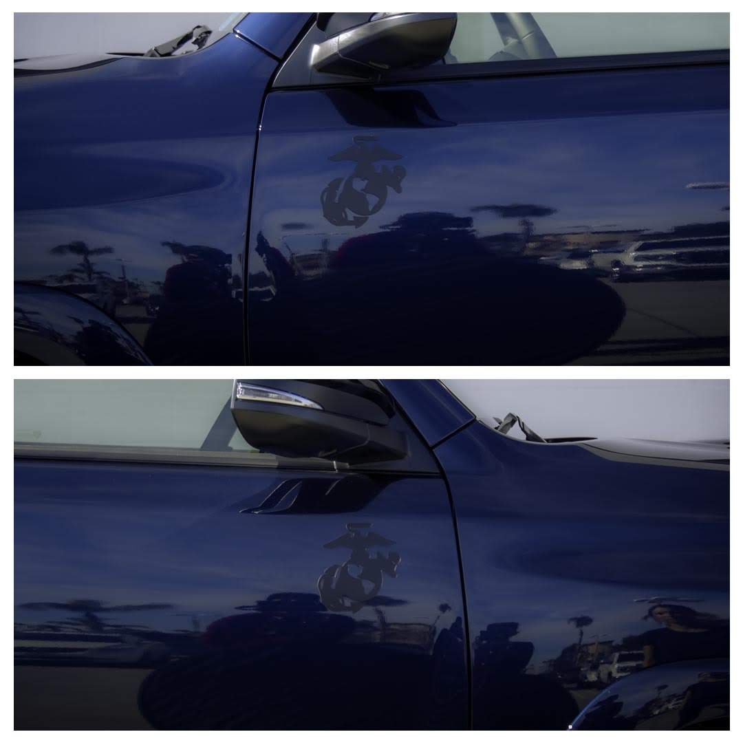 Our USMC Eagle, globe and anchor magnet comes in matte black color and is designed for use on vehicles. It is approximately 5x5" large and cut out to showcase your vehicle's color through the emblem.