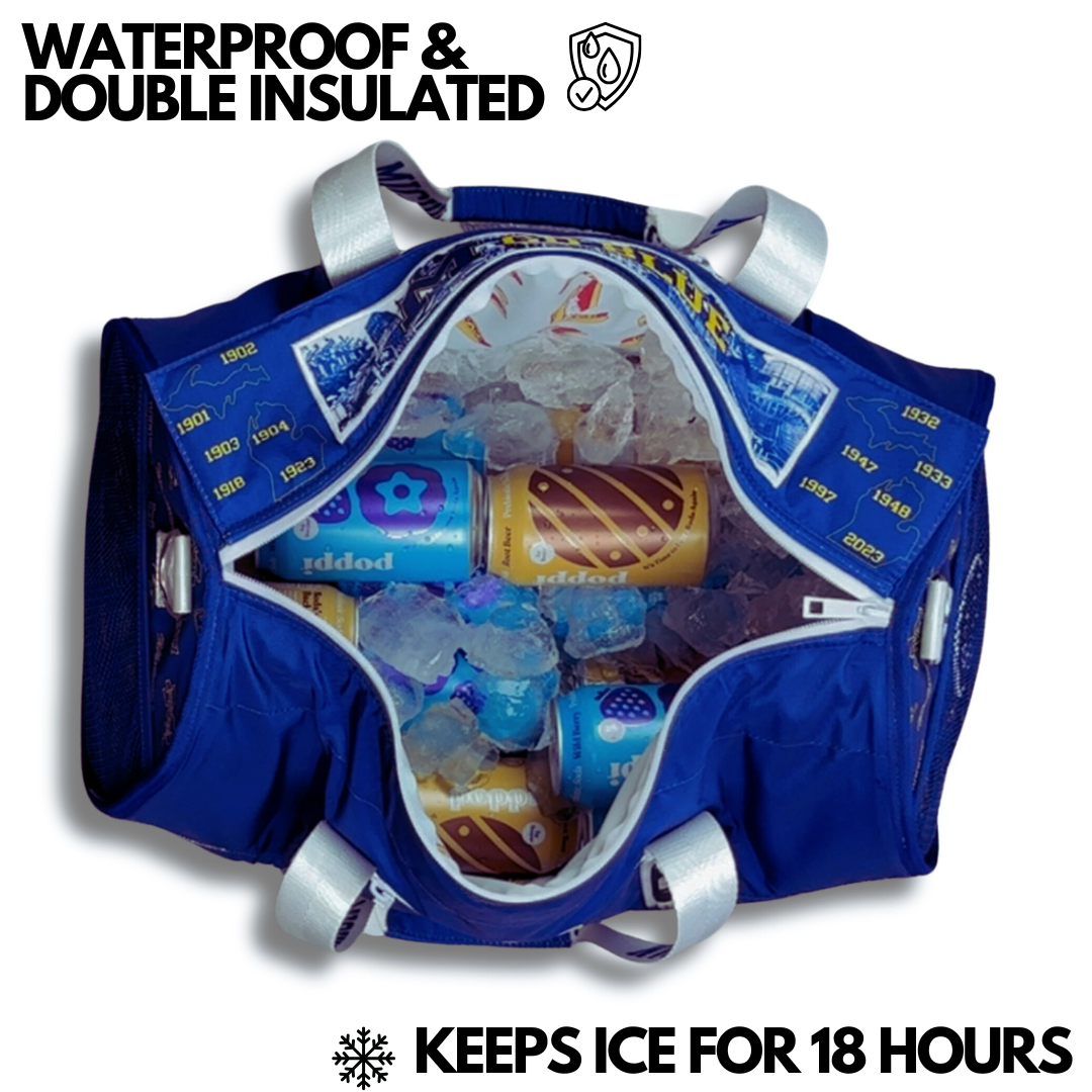 Rep your team with this one-of-a-kind, officially licensed Michigan duffel cooler—built to hold 30 cans, double as a weekend bag, and go wherever game day takes you.