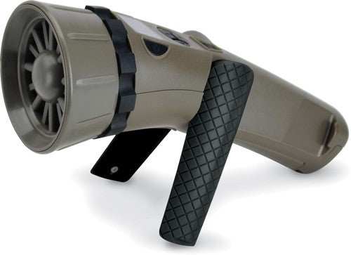 Other Features: Compact design with 75 pre-loaded game calls, sound activation trigger, weatherproof, uses 4-aaa batteries (not included) 300' range remote control, compact legs w/lockin position , rubberized grip, random repeat timed options
