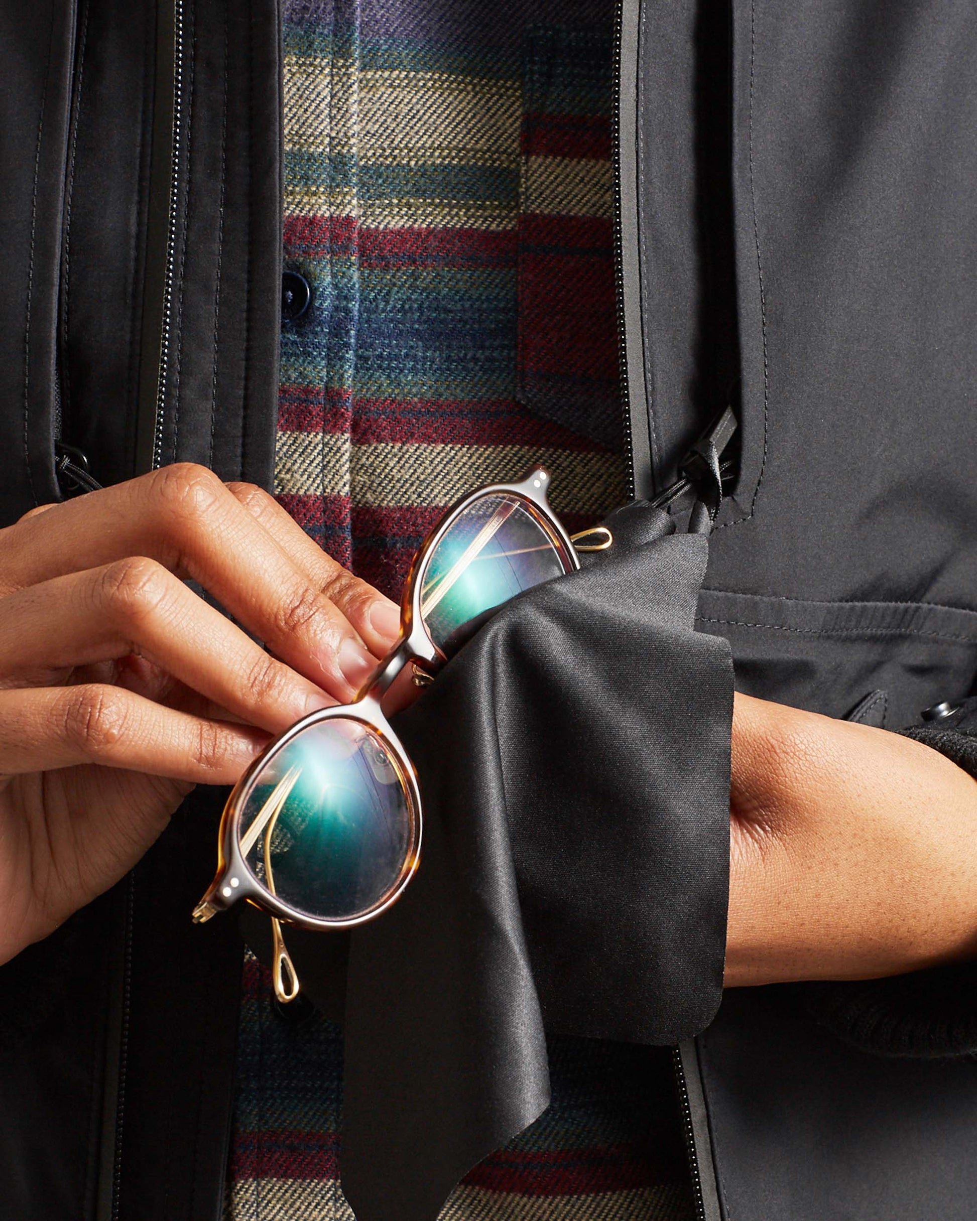 - 100% recycled polyester shell with a DWR coating, taped seams and a waterproof zipper