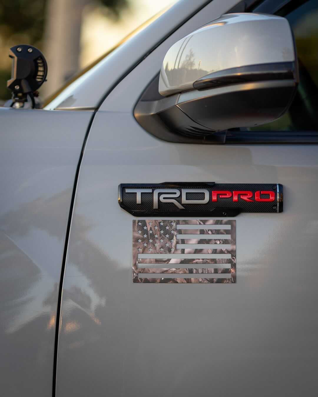 - Small Set CAMO DESIGN - Two 6” x 3.75” American flag magnets, passenger side in reverse in accordance with military protocol