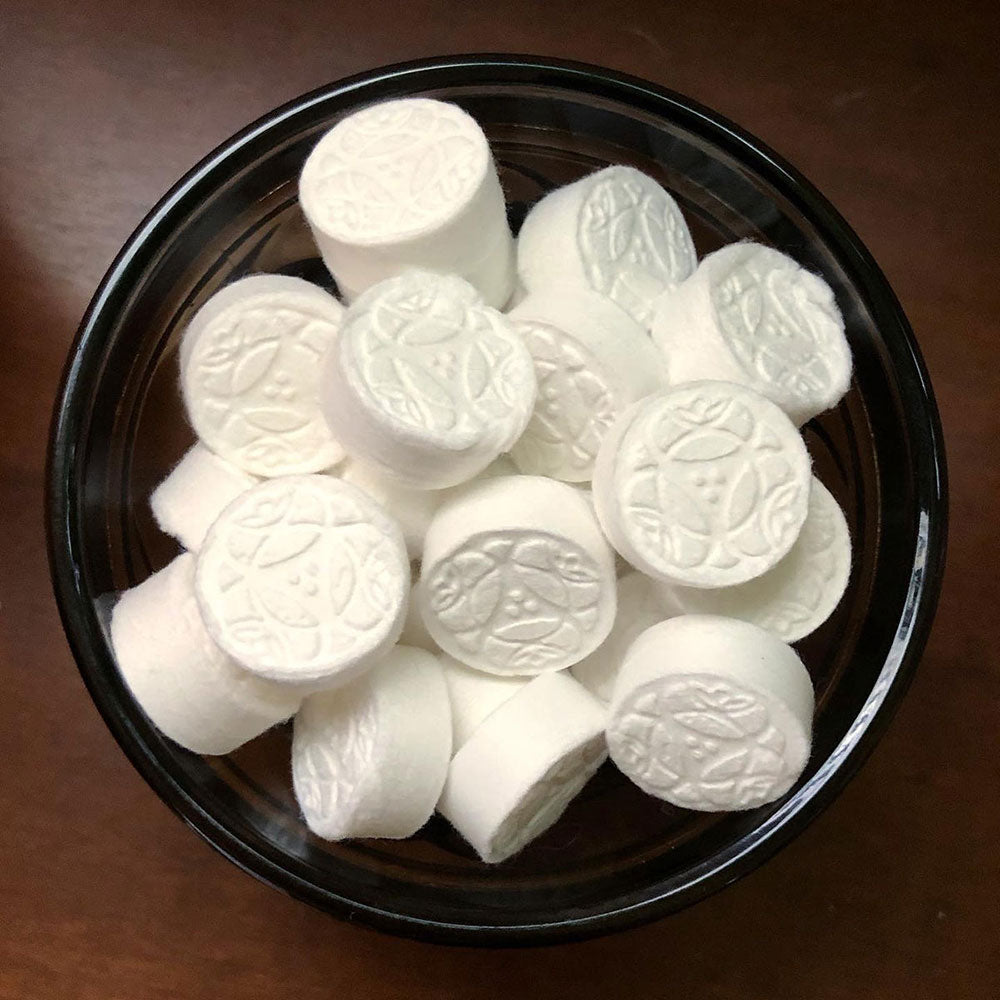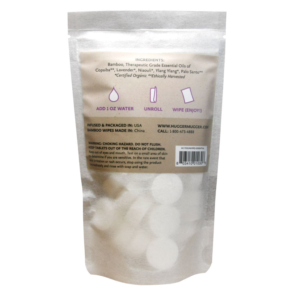 Just add water! Freshen up these naturally cleansing, biodegradable wipes for your face, feet, or yoga mat. Made with bamboo and essential oils. Add 1 oz water to a tablet and watch it expand! Unroll and refresh your face, hands, feet, or yoga mat with the natural properties of Copaiba**, Lavender*, Niaouli*, Ylang Ylang*, and Palo Santo**. *Certified Organic **Ethically Harvested