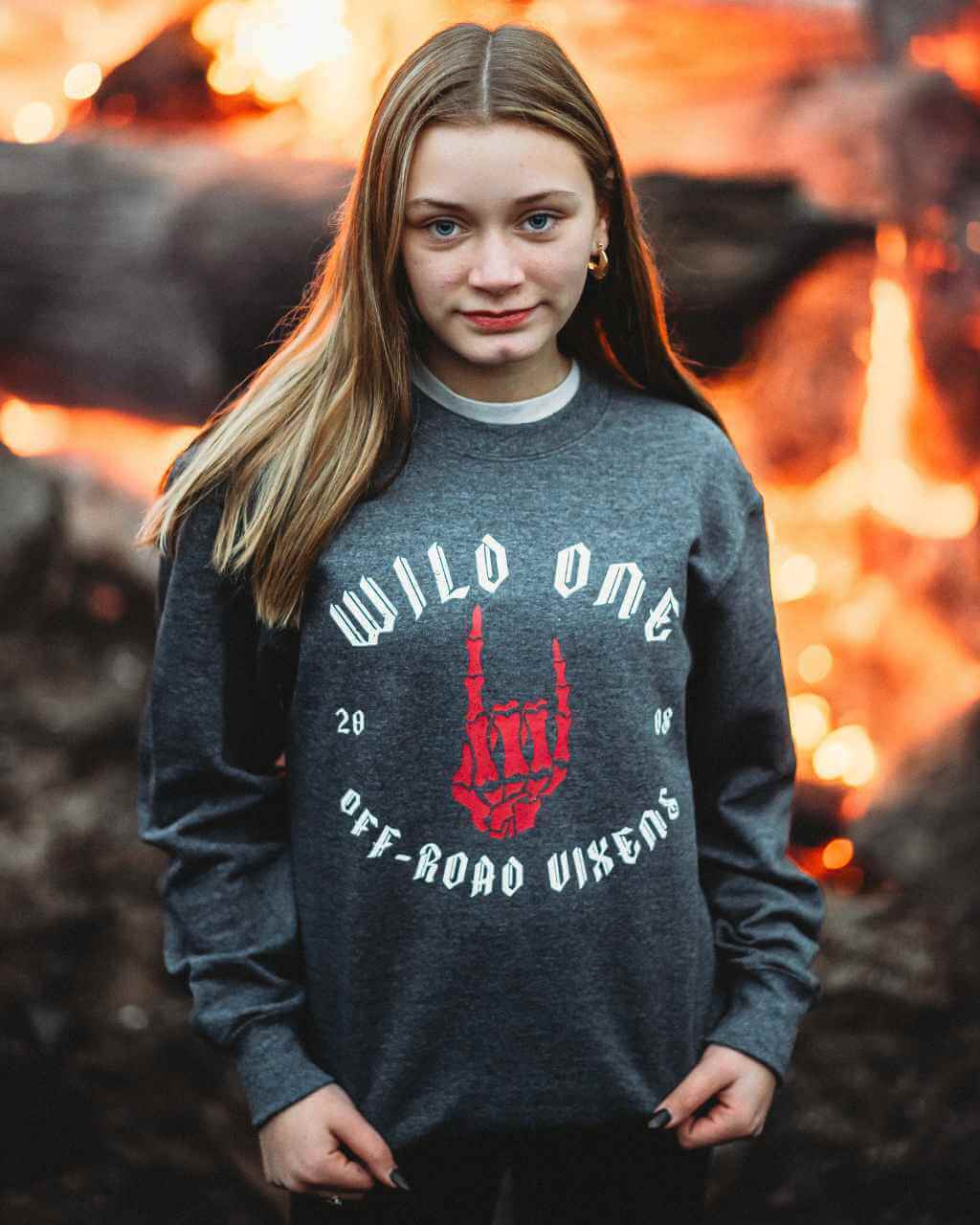 The perfect crewneck sweatshirt for your Wild One, This hoodless pullover is great to wear when your little is riding the trails or racing because there is no hood to get in the way! complete this look by customizing this with their name and number!